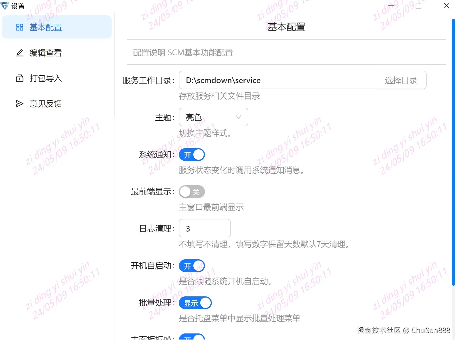 - 桌面屏幕水印:提供对电脑屏幕水印的启动、停止、重启、配置和日志管理。