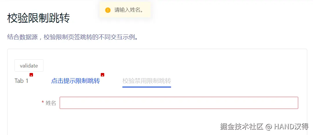 触发页签下表单校验,