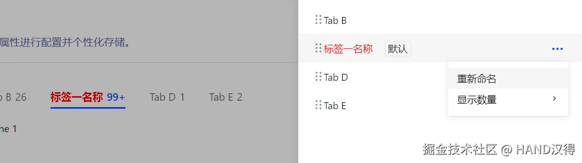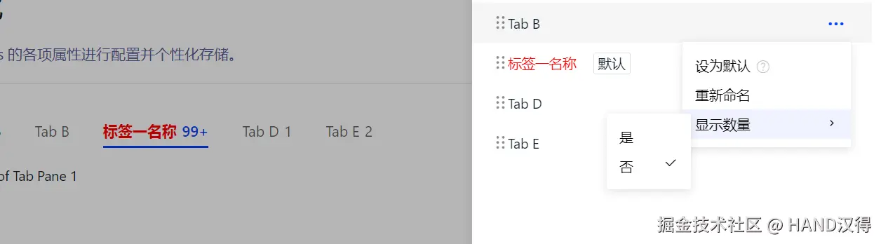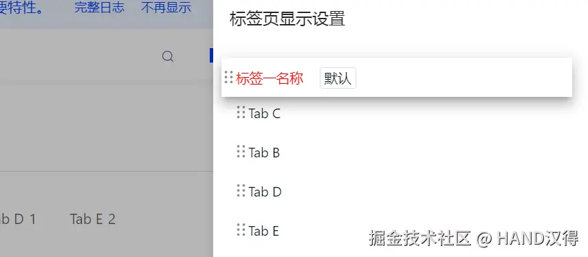 用户可通过鼠标悬浮页签区域,点击齿轮图标,在右侧弹出抽屉查看 Tabs 个性化相关配置。