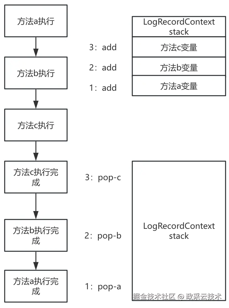 工具关键点: LogRecordContext 关键实现,这个类里面通过一个 ThreadLocal 变量保持了一个栈,栈里面是个 Map,Map 对应了变量的名称和变量的值。
