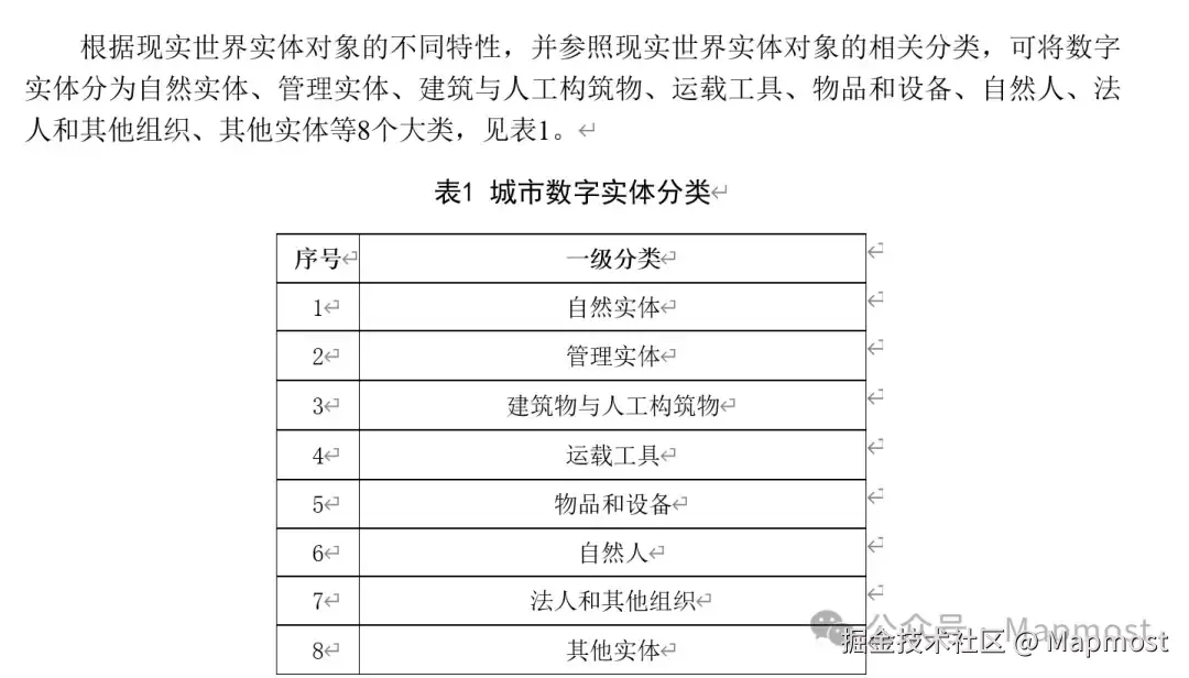 以下是本单位参与起草的数字孪生行业应用标准之城市数字实体分类,共分为八大类,包括自然实体、管理实体、建筑物与人工构筑物、运载工具、物品和设备、自然人、法人和其他组织、其他实体。