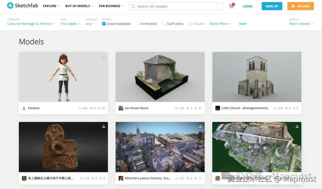 Sketchfab在线的3D模型平台,是一个支持用户上传3D模型的网页。用户可以在平台上搜索各种类型的3D模型,包括建筑、人物、动物、车辆等等。这些模型视觉效果逼真、具有较强的艺术性。