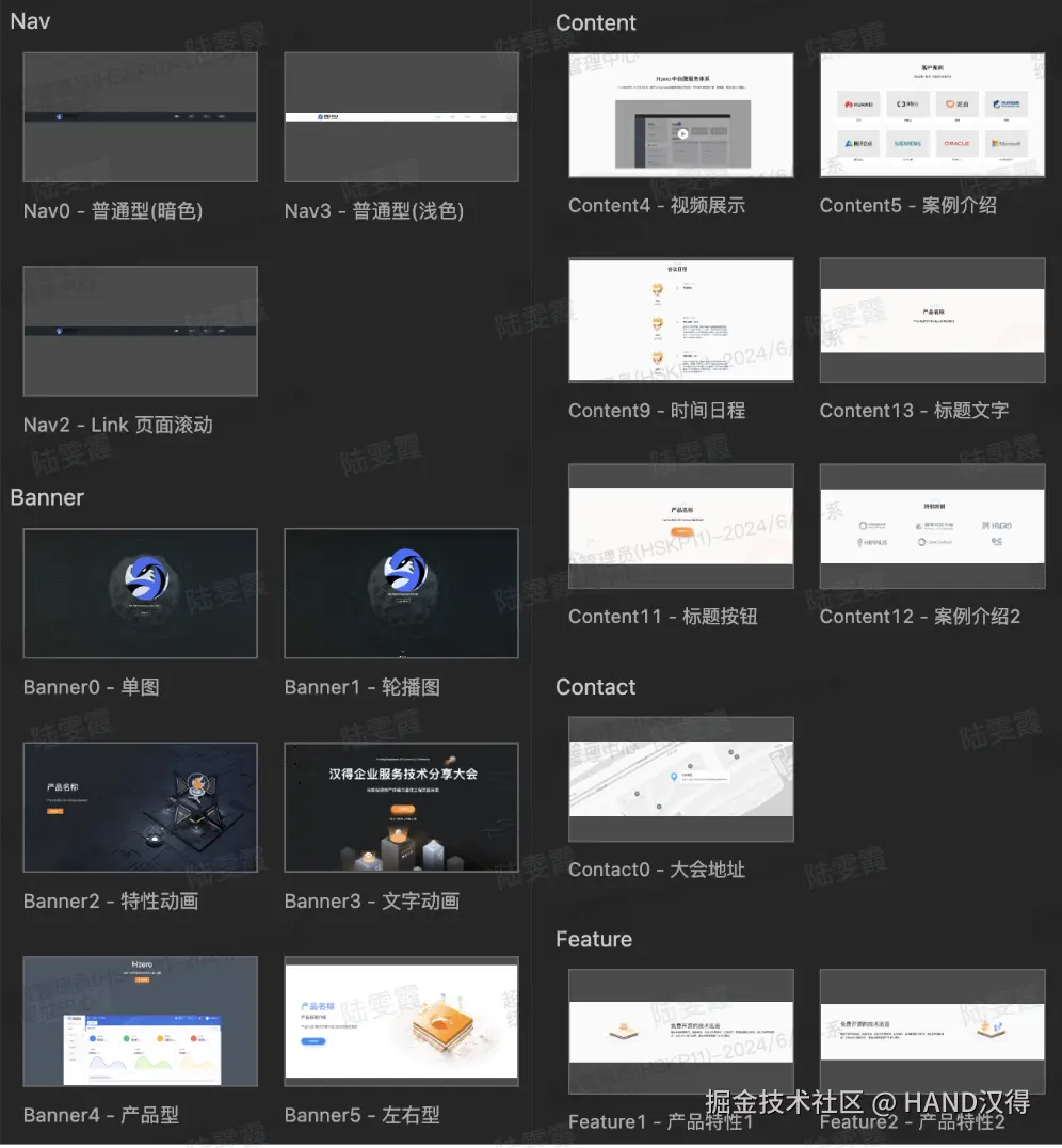 零衍静态页面配置功能内置了多彩多样的组件库,可供用户自主选择作为页面搭配使用,内置的组件库足够满足日常产品介绍、活动介绍等功能的页面设计需求。
