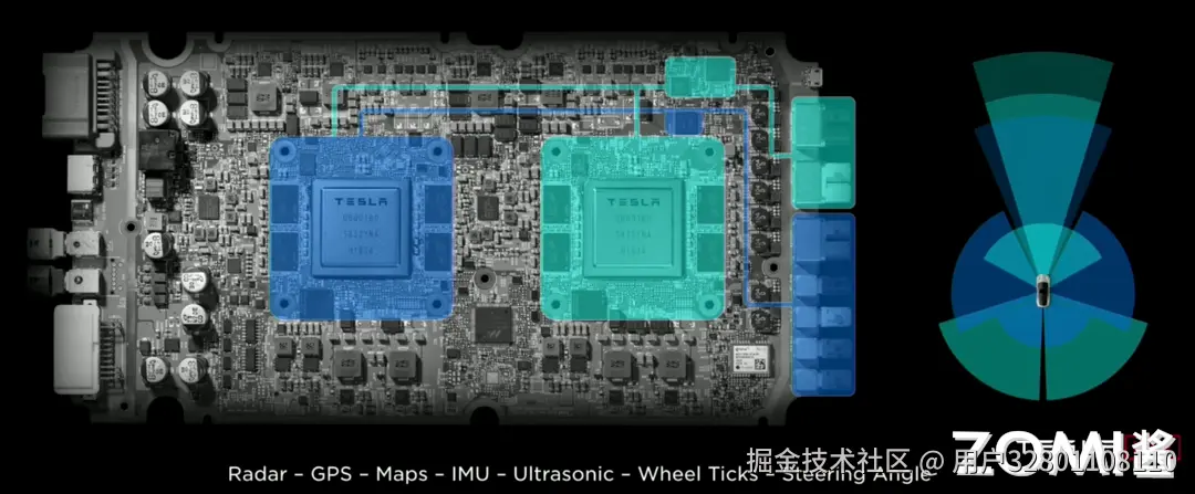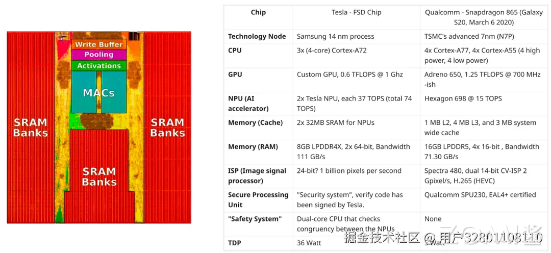 我们以一个具体的例子来引入:特斯拉 HW3 FSD 芯片(如下图),我们可以看到其单一芯片却有着 CPU,GPU,NPU 多种架构。