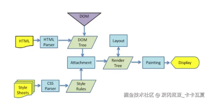 Render Tree)。渲染树只包含需要显示的元素,隐藏的元素不会包含在渲染树中。渲染树不包含 CSS 中的一些影响布局但不显示的元素,比如:display:none的元素。 - 布局(Layout) :布局阶段确定渲染树中每个节点的精确位置和大小,按照文档流模型进行布局。计算节点的几何属性,比如位置、大小等。