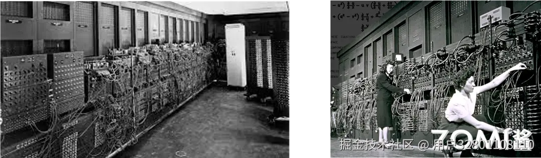 回顾历史,世界上第一台真正意义上的计算机 ENIAC:(Electronic Numerical Integrator And Calculator,电子数字积分计算机),于 1946 年在美国宾夕法尼亚大学投入运行,采用十进制进行数据存储。最初也专门用于火炮弹道计算,后经多次改进而成为能进行各种科学计算的通用计算机。这台完全采用电子线路执行算术运算、逻辑运算和信息存储的计算机,运算速度比继电器计算机快 1000 倍。