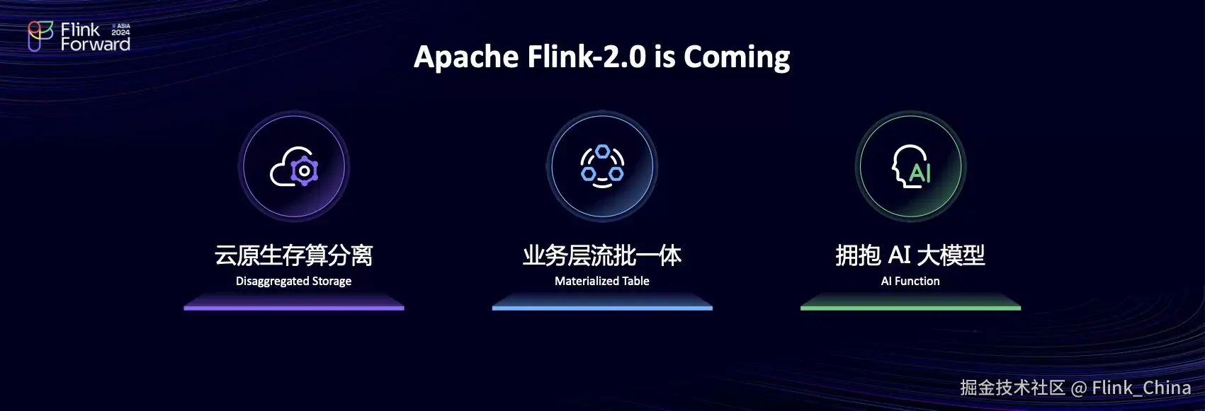 Flink 经过十年的发展已成为流处理领域的事实标准,接下来面对 AI 新时代、面向全面云原生时代,Flink 的技术架构也需要与时俱进的升级。在 Flink 十周年之际即将推出新一代的 Flink 架构——Flink2.0,这是自 2016 年发布 Flink 1.0 以来最大规模的技术架构升级。