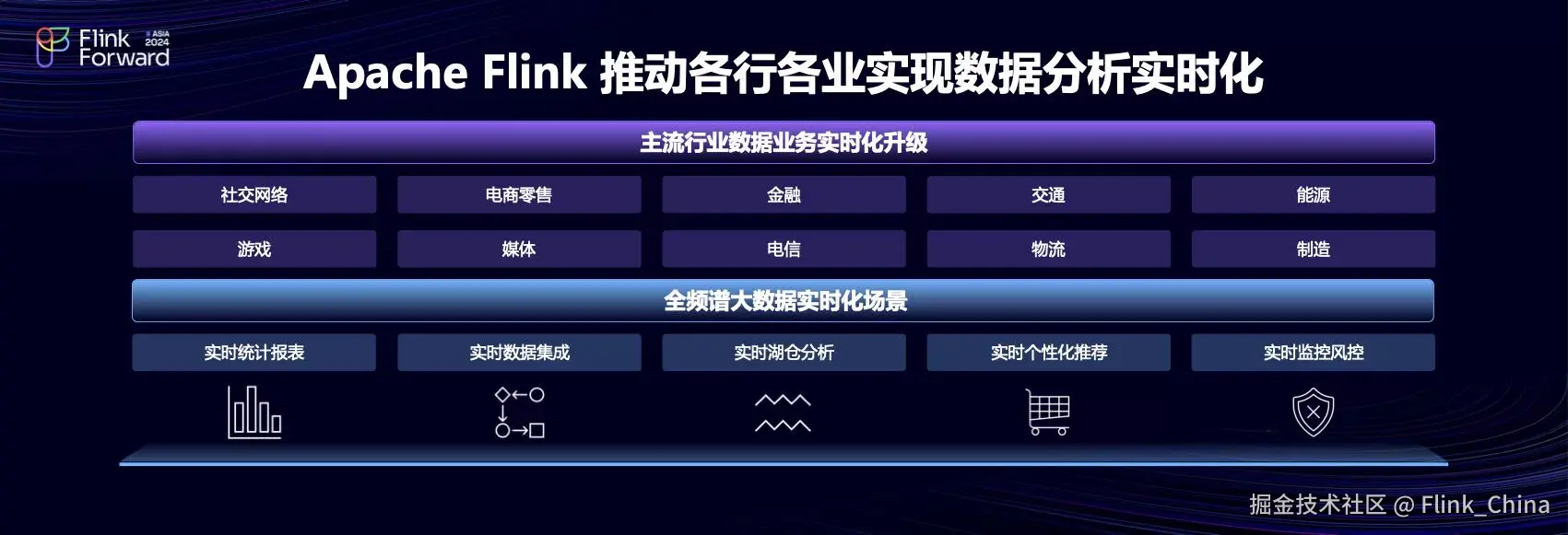 Flink 之所以能够取得如此成就,关键在于它顺应了时代发展的需求,适应了近年来大数据领域从离线处理向实时处理转变的趋势,满足了包括互联网、金融、电信、能源、制造、物联网等多个行业对于更高效数据分析的需求。