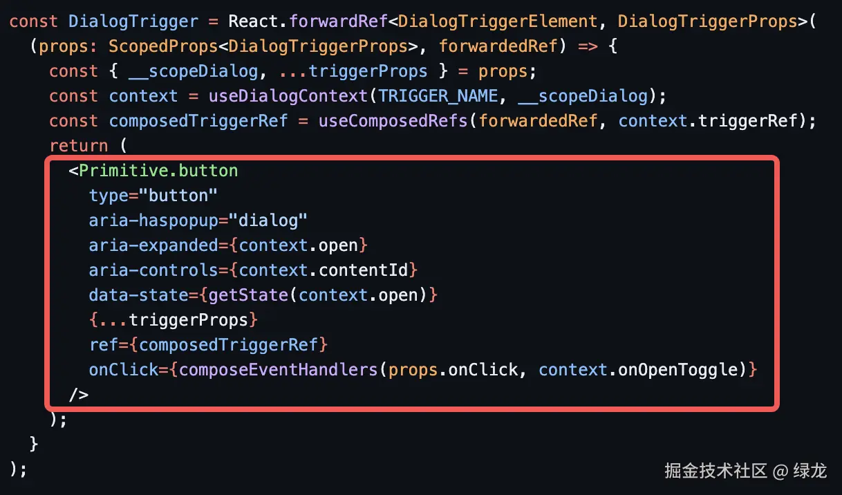 在组件实现上,Dialog 的根组件 Dialog.Root 并不渲染 DOM,而是作为容器层派发 props,实际上是一个 ContextProvider: