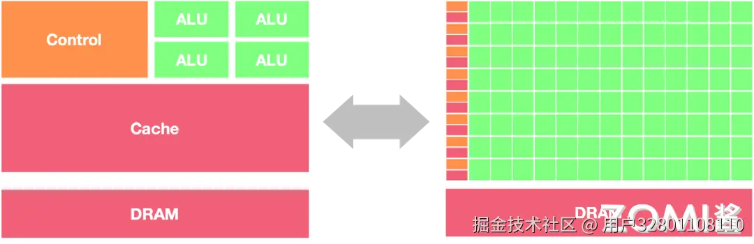GPU 和 CPU 在架构方面的主要区别包括以下几点: