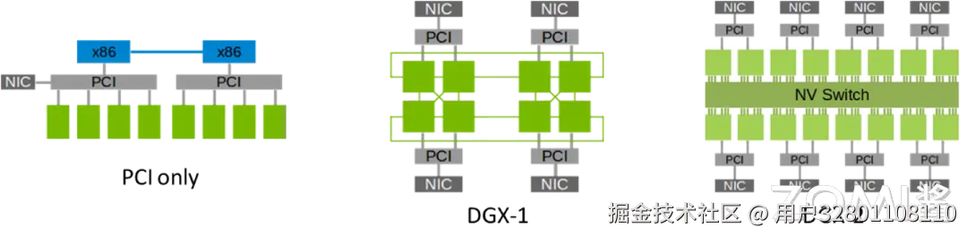 以上我们介绍的都是软件层面的分布式策略和算法,接下来我们来看下通信的硬件上是如何实现的。
