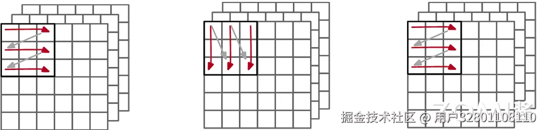 除了 ND 和 NZ 格式,还有其他数据格式,如下图所示,图中最左侧小 z 大 Z,即为 ND 格式示意图,块内按照行排序,块间也按照行排序,常用于特征图的数据存储。