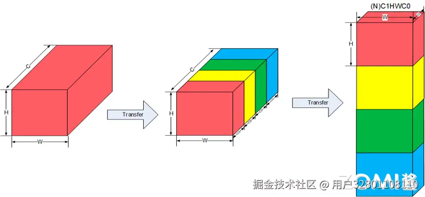 将 NHWC 数据在 C 维度进行分割,变成 C1 份 NHWC0。