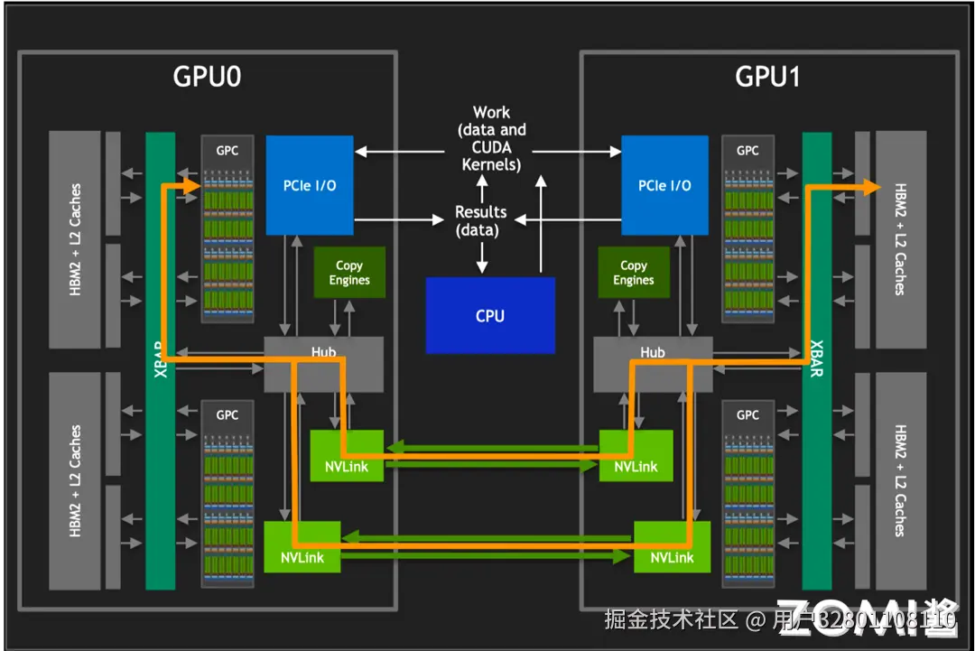 NVLink 的出现为 GPU 间的互联提供了一种革命性的方式,使得不同 GPU 之间的通信和数据共享变得更加高效和直接。