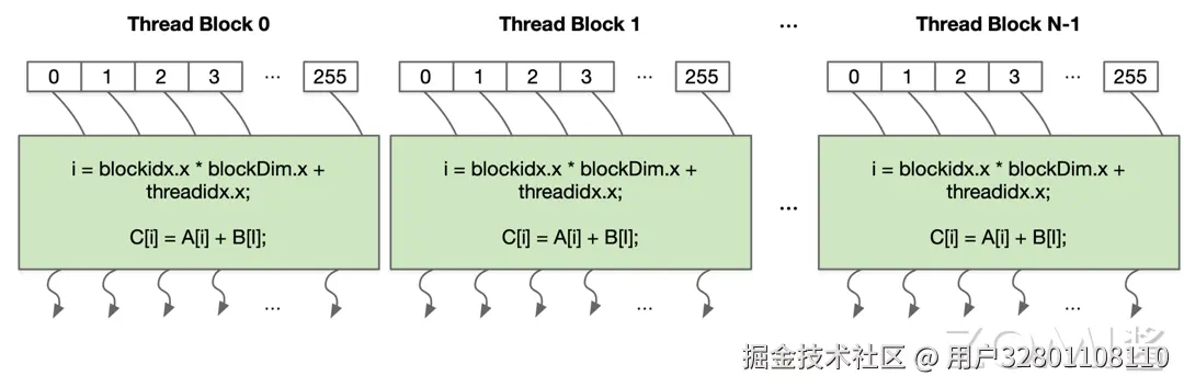 __global__ void vectorAdd(int *a, int *b, int *c) {