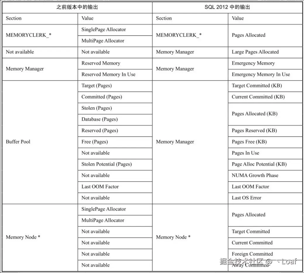 DBCC MemoryStatus输出的改变
