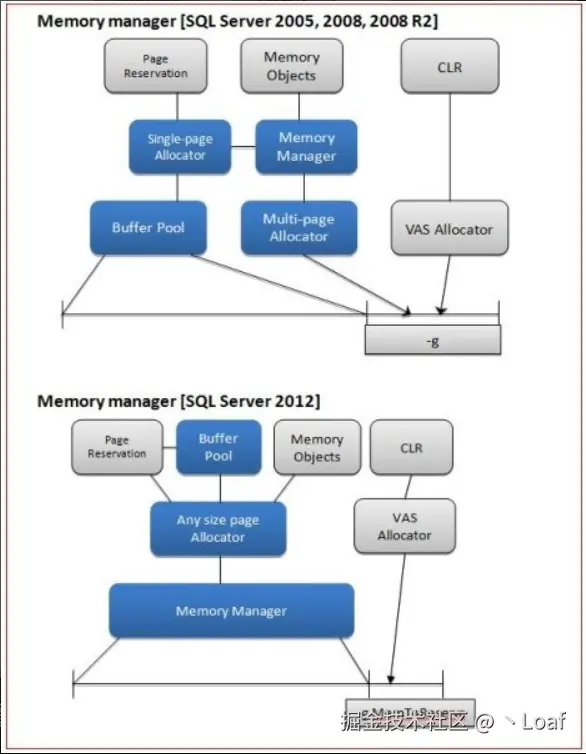 Max Server Memory仅限制了 Buffer Pool 和单页分配,不包括 Multi-page allocation 和 CLR allocation 等。 - SQL Server 2012 及以后:引入了统一的 Any-size Page allocator,使得