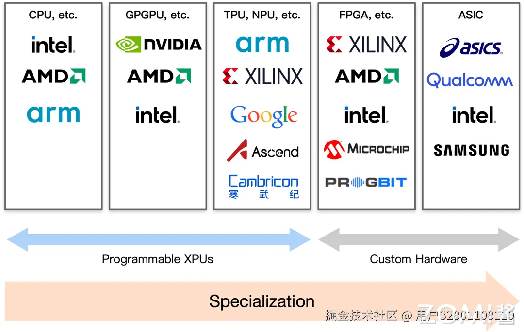 首先,下一代编译器需要提供硬件抽象,以跨越多样化的加速器。随着 GPU、FPGA、ASIC 等不同类型的加速器的出现,编译器必须能够抽象出硬件的具体细节,为开发者提供一个统一的编程接口。这样,开发者就可以专注于算法和应用的开发,而不必深入了解底层硬件的复杂性。