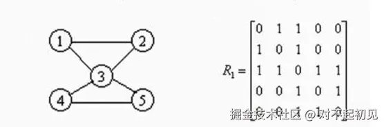 :::color2 用一个n阶方阵R来存放图中各结点的关联信息,其矩阵元素Rij定义