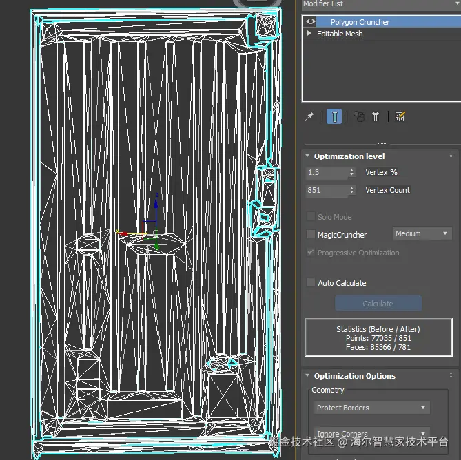 这个优化思路虽然不是“正道”,但它可以绕开减面遇到的破面问题和细节丢失问题,一步到位彻底解决模型三角面数过多的问题。
