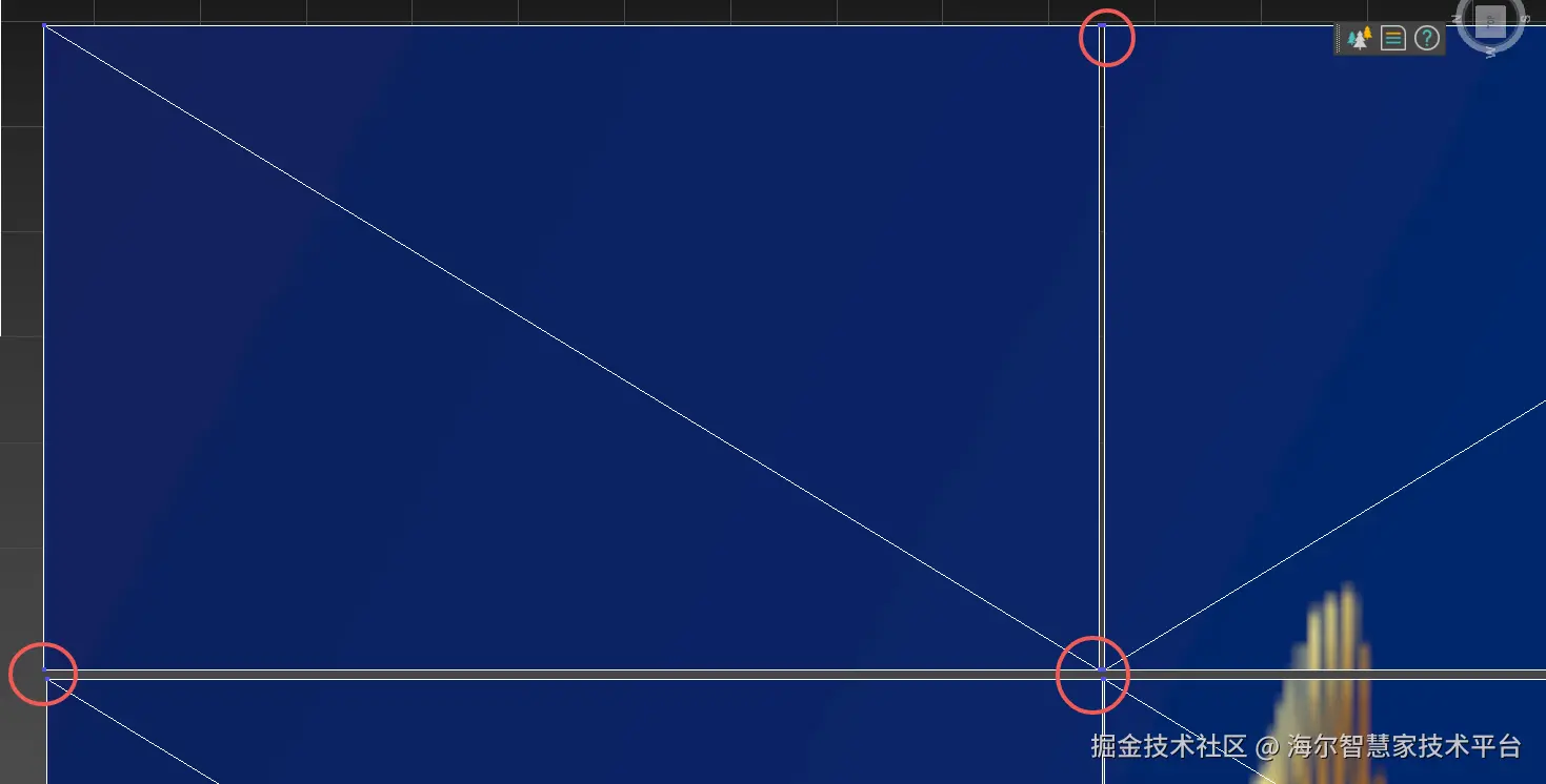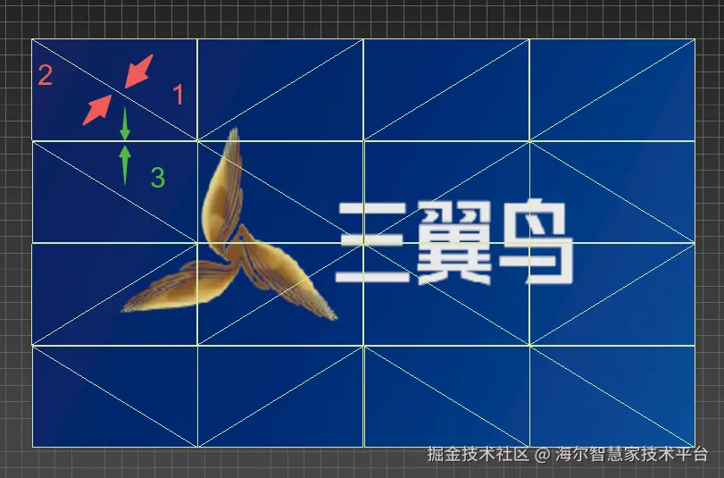但这里最关键的其实是 【 问题 5 】如何确定一个边是属于轮廓的? 其实很简单,前面说过“在三维网格中,每条边都一定会关联两个三角面”,但是当三维退化成二维时,如下图 terrian 瓦片所示,在边界出就会出现【回答 5 】一条边只关联一个三角面的情况,此时这条边就在轮廓上。