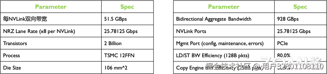 其次,NVSwitch 基于台积电的 12nm FinFET FFN 工艺制造,这种先进的工艺技术使得 NVSwitch 能够在 100W 的功率下运行,同时集成了高达 2 亿个晶体管。