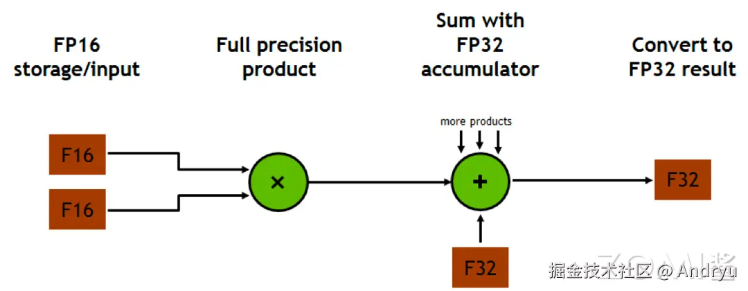混合精度训练不仅仅是在模型中同时使用 FP16 和 FP32 那么简单,而是指在底层硬件算子层面,使用半精度(FP16)作为输入和输出,使用全精度(FP32)进行中间结果计算从而不损失过多精度的技术。这个底层硬件层面其实指的就是 Tensor Core,所以 GPU 上具备 Tensor Core 是使用混合精度训练加速的必要条件。