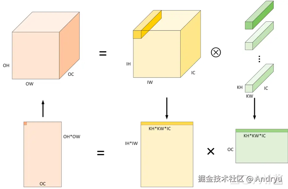 - 将输出矩阵 在内存布局视角即为预期的输出张量 ,或者使用 Col2Im 算法变为下一个算子输入 。