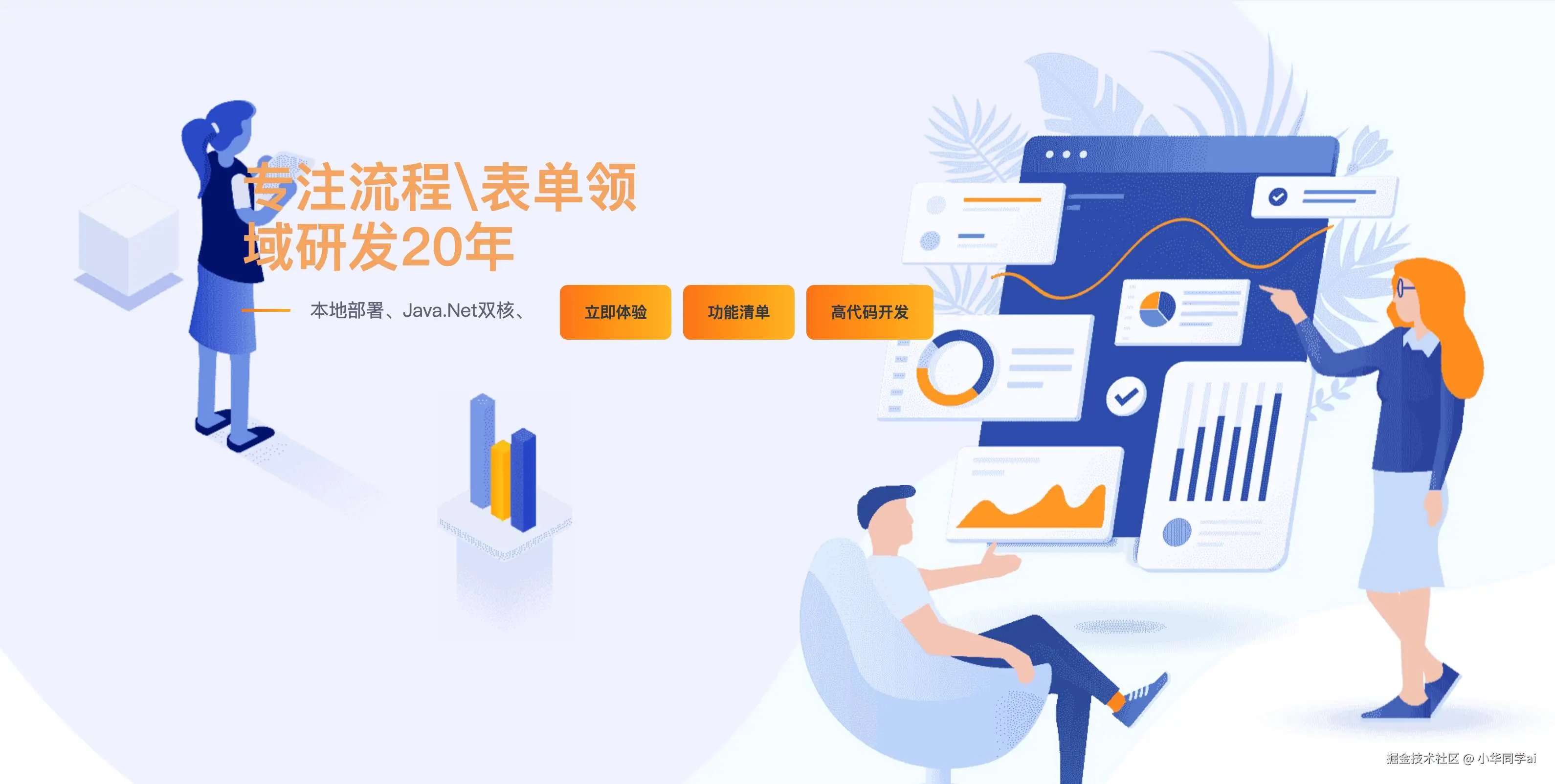 - 低代码开发平台:实体、报表、大屏等、OA基础应用。