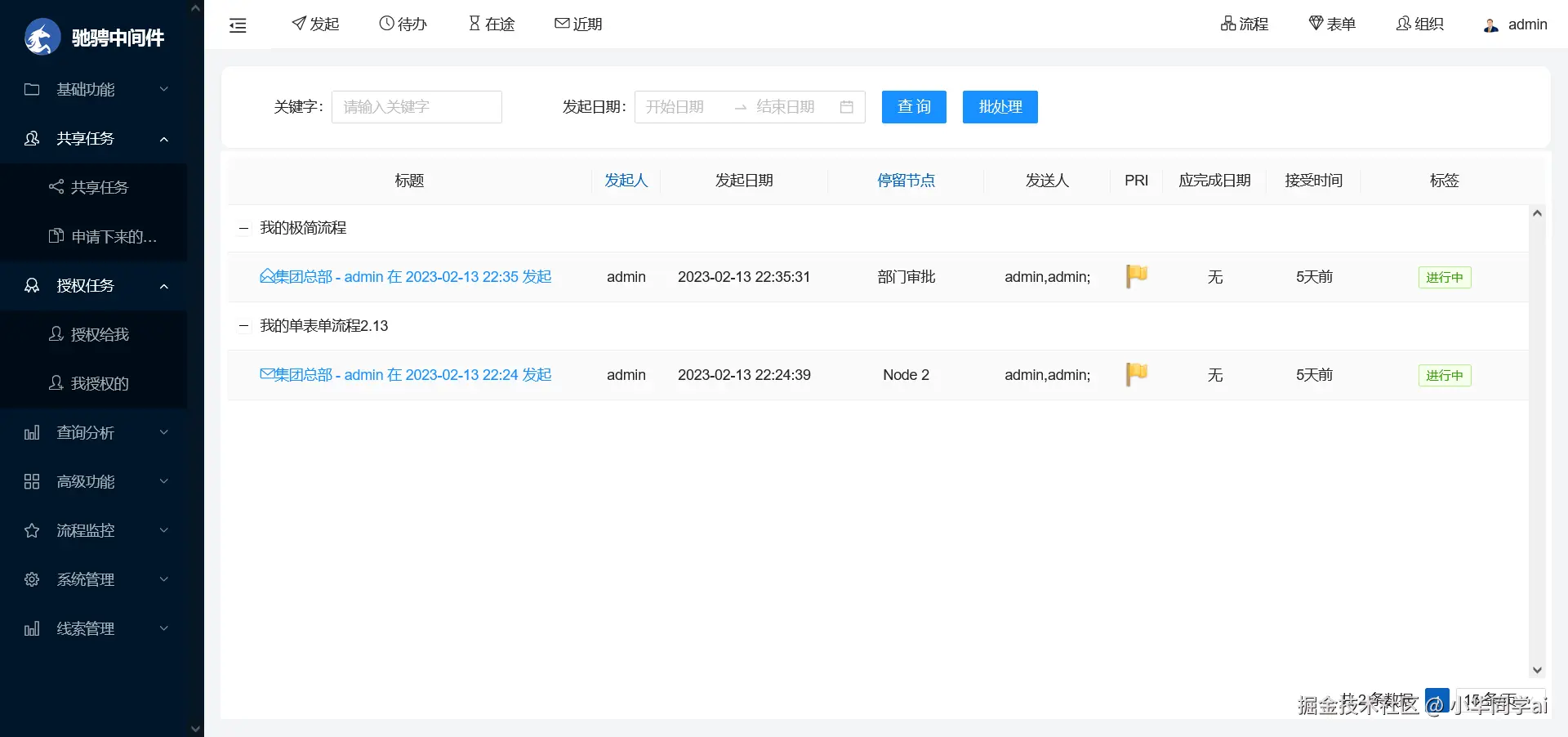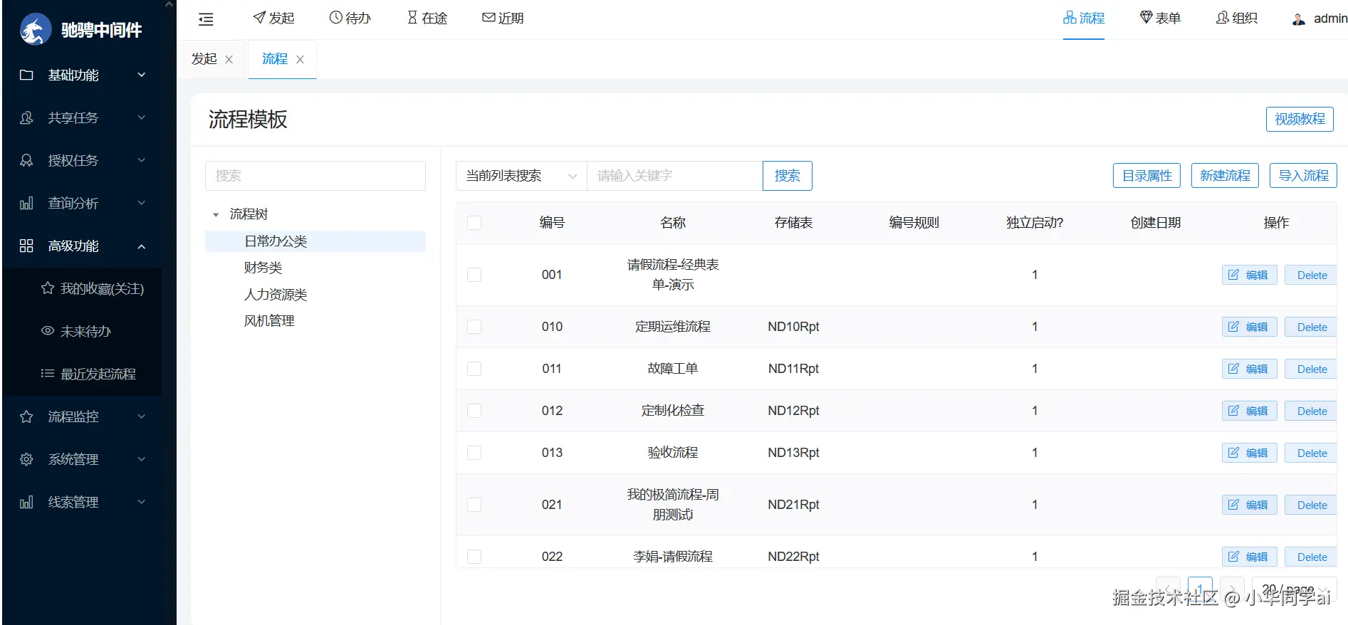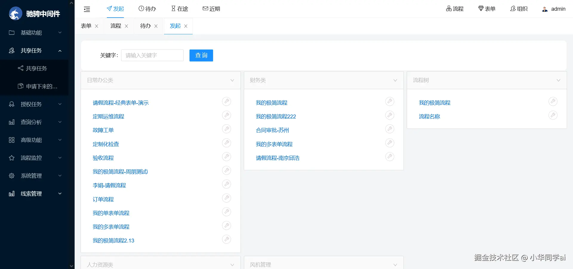 - 创建工作流:用户可以通过 JFlow 的图形化界面,使用拖拽方式创建工作流,并设置流程节点、任务和权限等。
