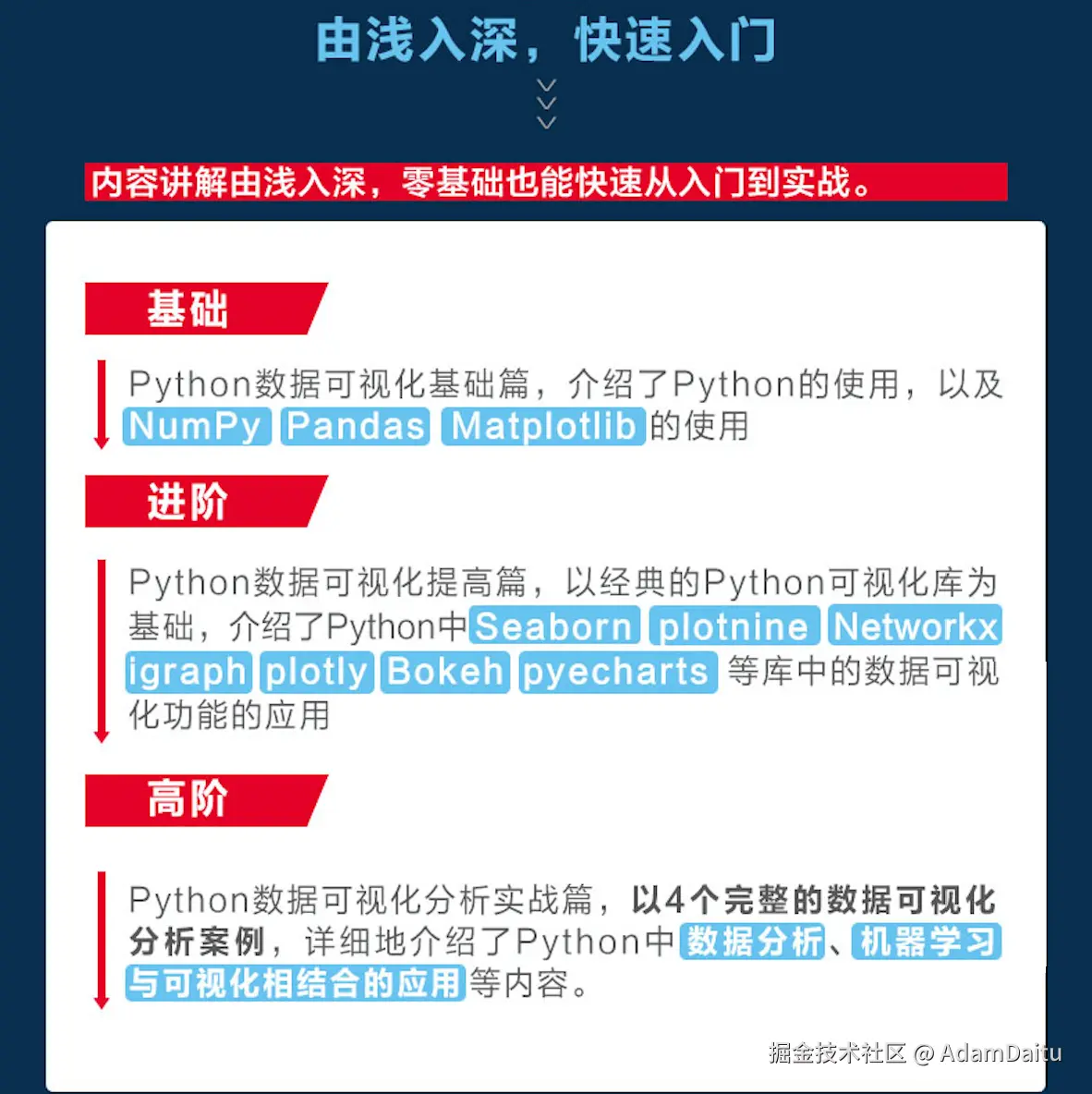 通过阅读第1~3个章: Python 数据可视化基础篇,你将会学到如下内容: