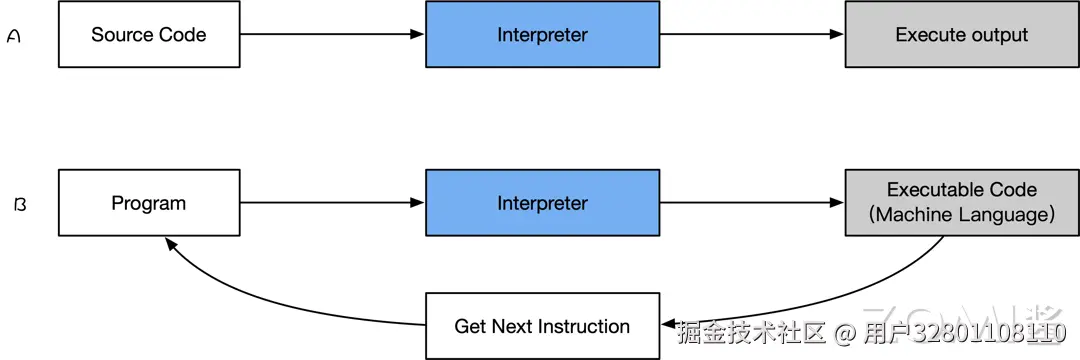 解释器能够直接执行程序或脚本语言中编写的指令,而不需要预先将这些程序或脚本语言转换成目标代码或者机器码。典型的解释型语言有 Python、PHP 和 Matlab。