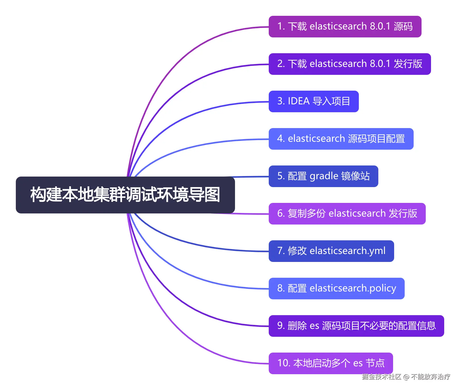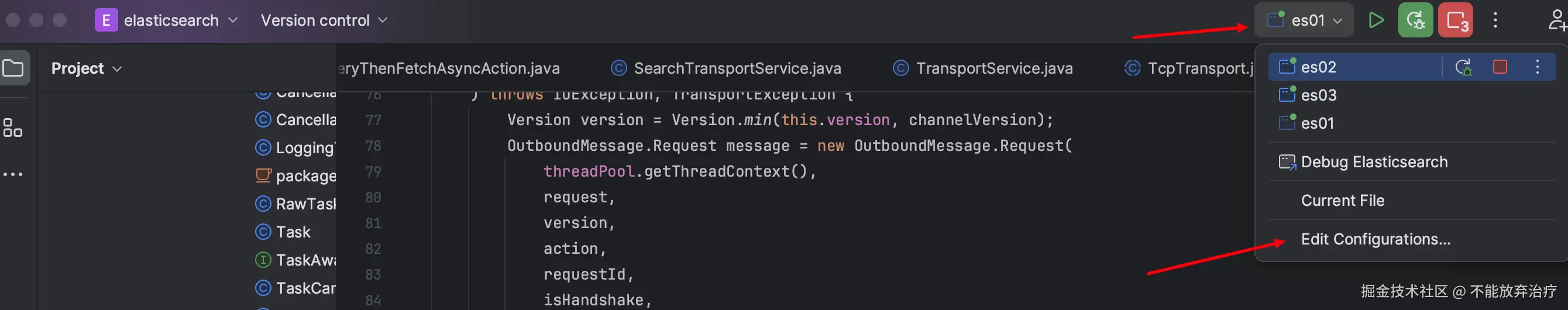 如果你觉得在 1 个项目中启动多个 elasticsearch 进程不方便 debug,可以拷贝多份 elasticsearch 源码,IDEA 打开多个 elasticsearch 源码项目,从而每个针对每个节点设置不同的断点。