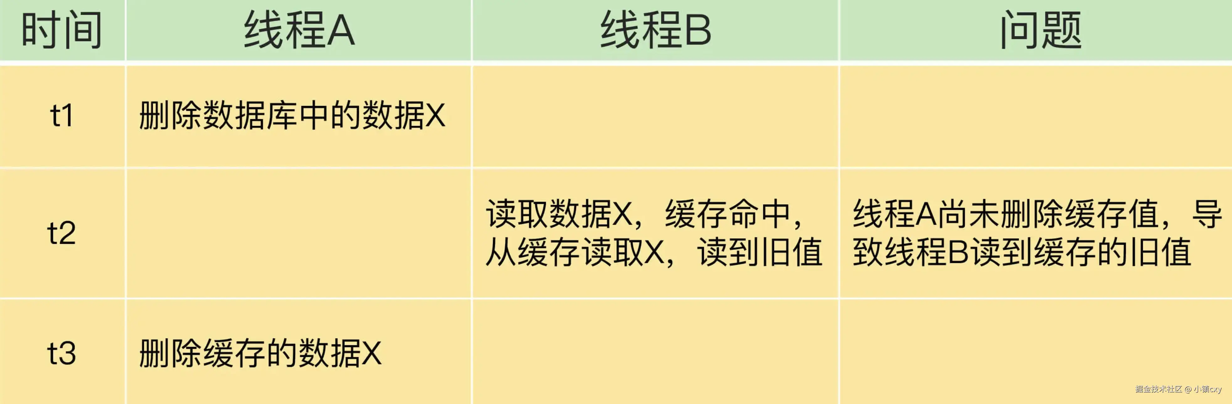 可能会出现的问题,如果线程 A 删除了数据库中的值,但还没来得及删除缓存值,线程 B 就开始读取数据了,那么此时,线程 B 查询缓存时,发现缓存命中,就会直接从缓存中读取旧值。 不过,在这种情况下,如果其他线程并发读缓存的请求不多,那么,就不会有很多请求读取到旧值。而且,线程 A 一般也会很快删除缓存值,这样一来,其他线程再次读取时,就会发生缓存缺失,进而从数据库中读取最新值。所以,这种情况对业务的影响较小。