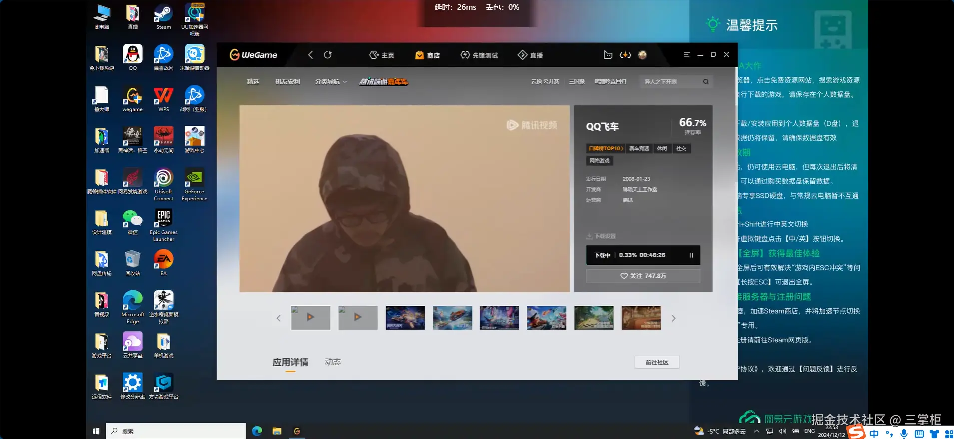 网易云游戏没有预制QQ飞车,下载速度有点慢,需要一个小时,由于可用时长不够,暂时没有测试,但是从其无限暖暖的测评效果来看,其效果应该不差。