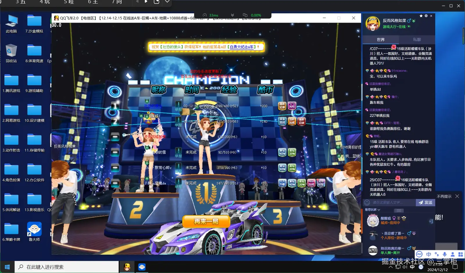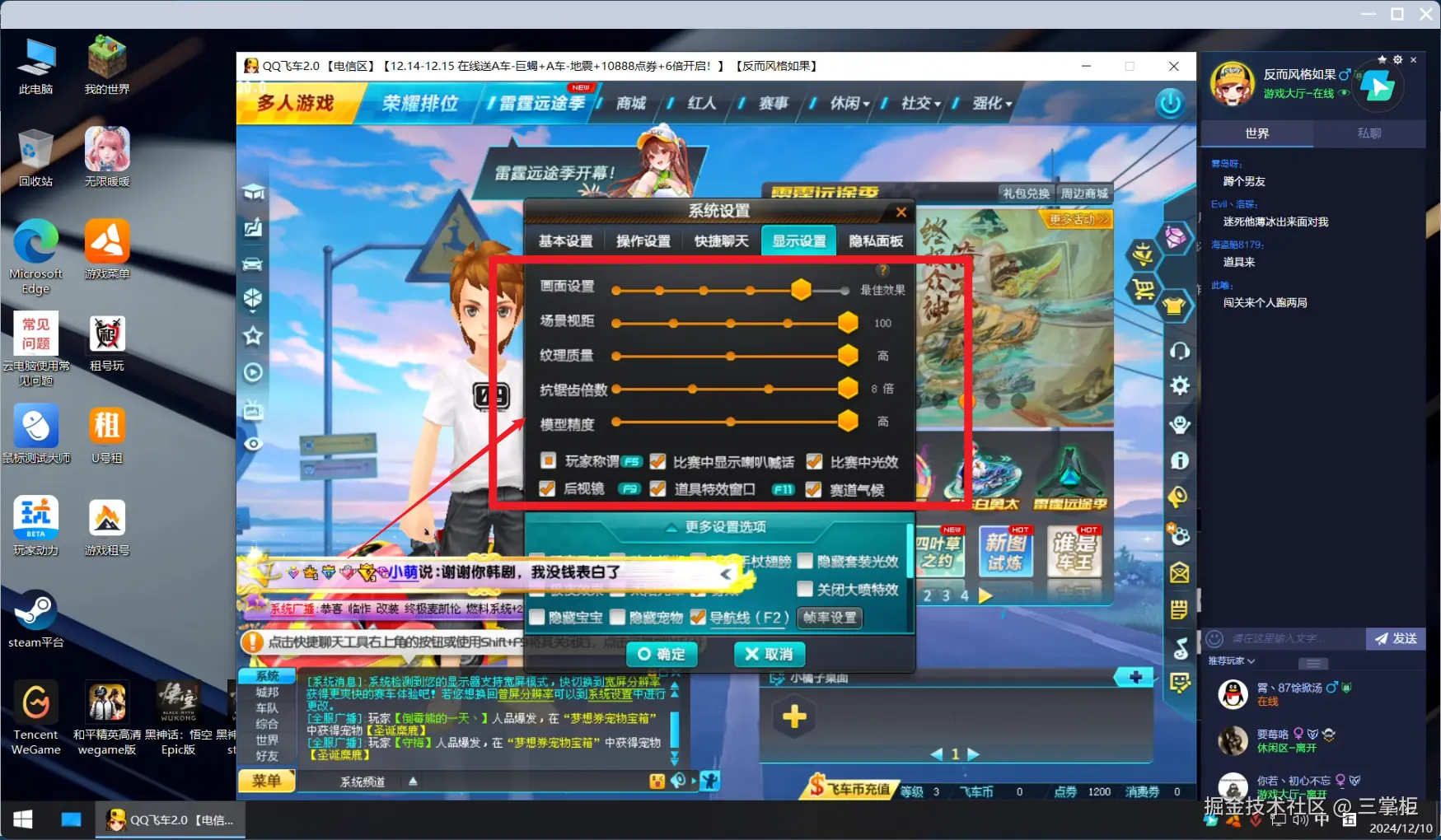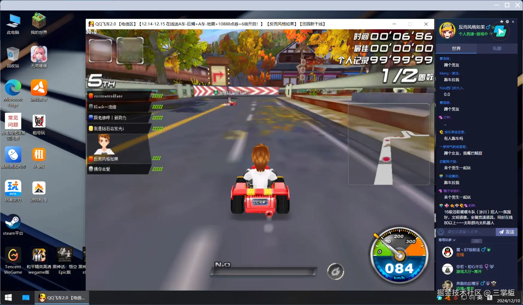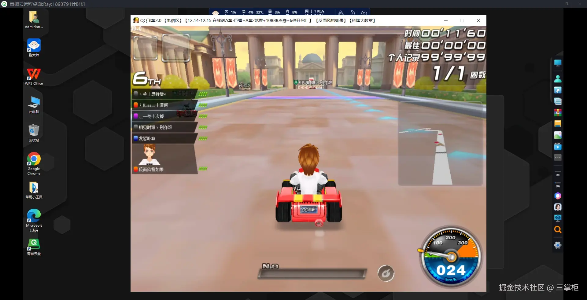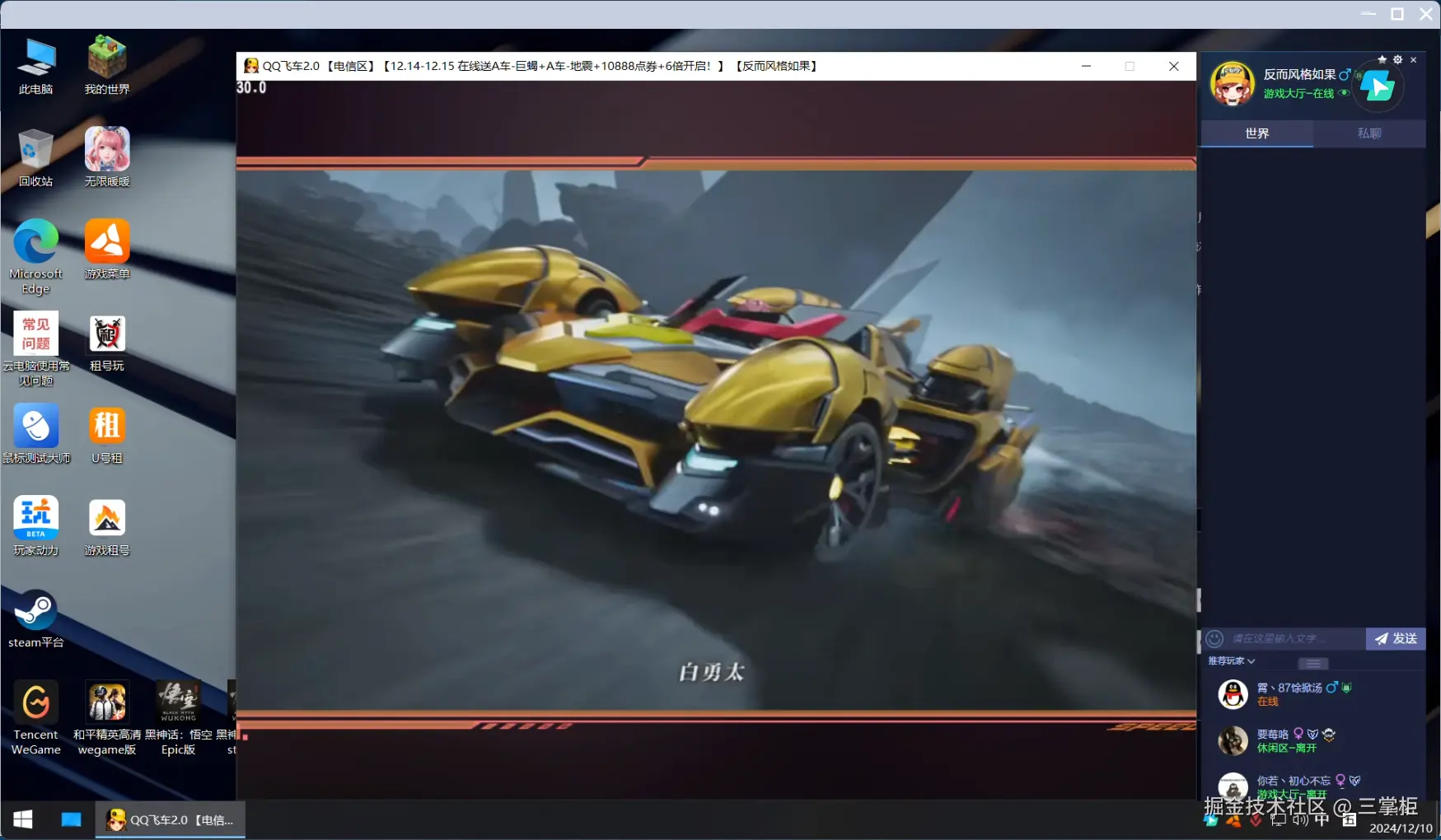 在这次的实战测试中,我选择了经典的老牌赛车游戏《QQ飞车》来对各大云电脑的游戏表现进行评测。作为一款图形精美、操作要求较高的赛车游戏, 《QQ飞车》对云电脑的性能提出了较高要求,尤其是在画质、流畅度和操作响应上,都需要足够强大的硬件支持。
