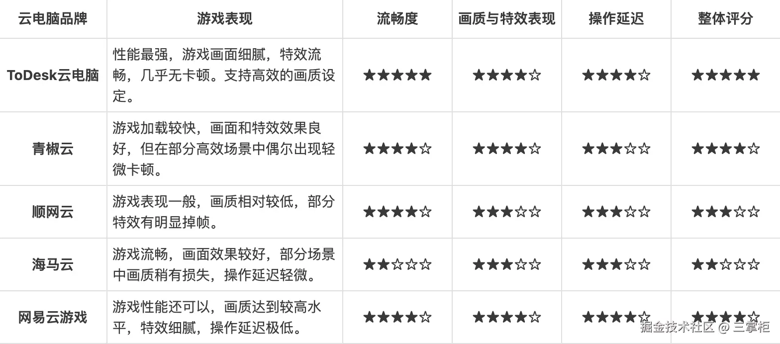 以下是我对每款云电脑在游戏中的实战体验总结。