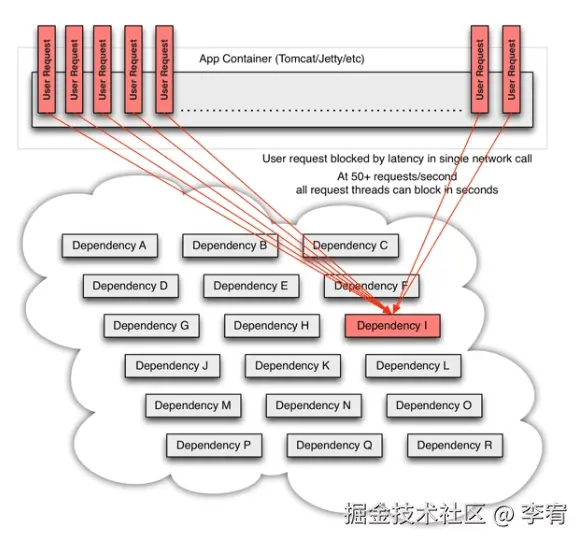 - **问题:**由于某个外部服务导致的阻塞