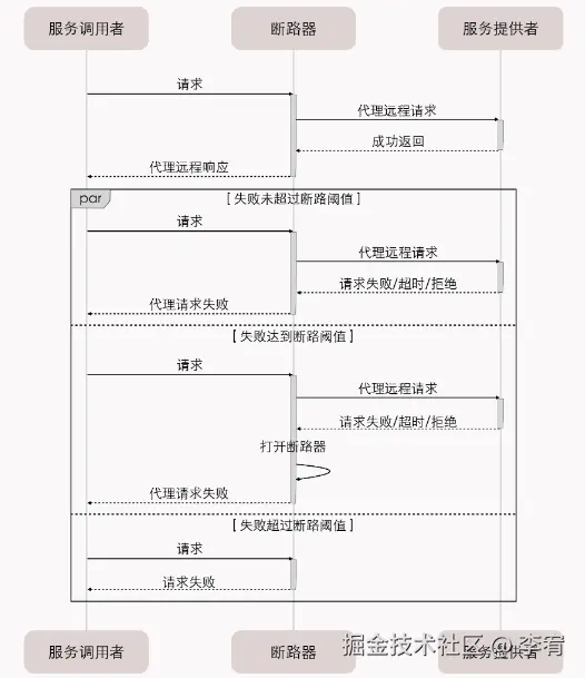 - **定义:**通过代理(断路器对象)接管服务调用者的远程请求,监控服务返回的结果。