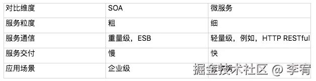 - 快速迭代:互联网企业需要快速迭代,SOA 的复杂性和重负载不利于快速开发和部署。