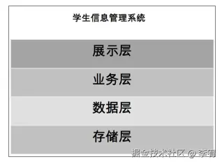 - 示例:学生信息管理系统中的展示层、业务层、数据层、存储层。