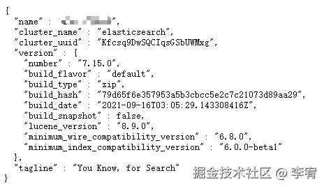 - 浏览器输入访问地址:http://localhost:9200/如下表示启动成功。