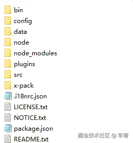 - Windows 版的 Kibana 的安装很简单,解压即安装完毕,目录结构如下