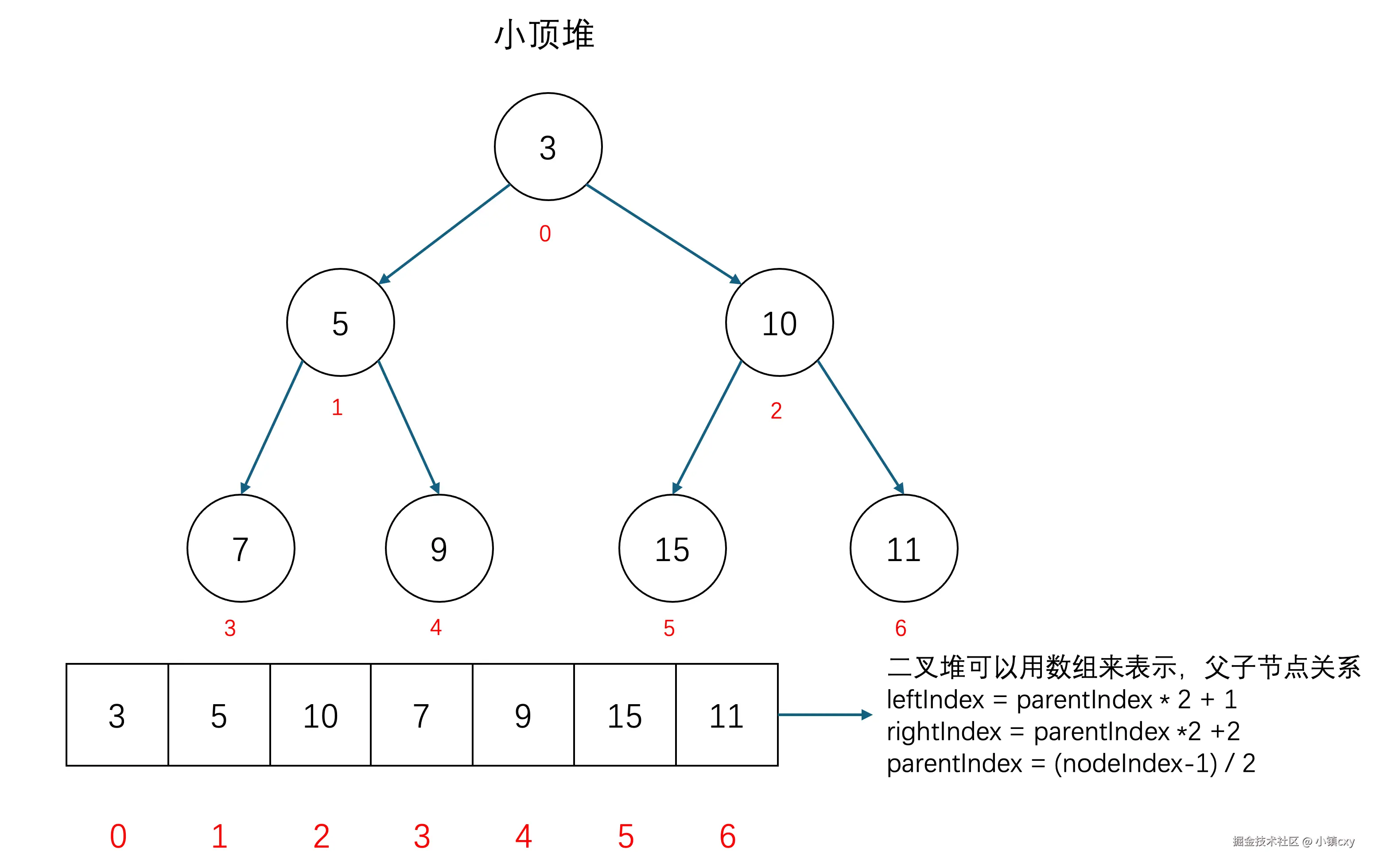 - 小顶堆::是一种 二叉堆,性质为:父节点的值 小于 子节点的值。