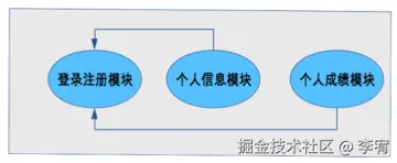 - 逻辑角度:登录注册模块、个人信息模块、个人成绩模块。