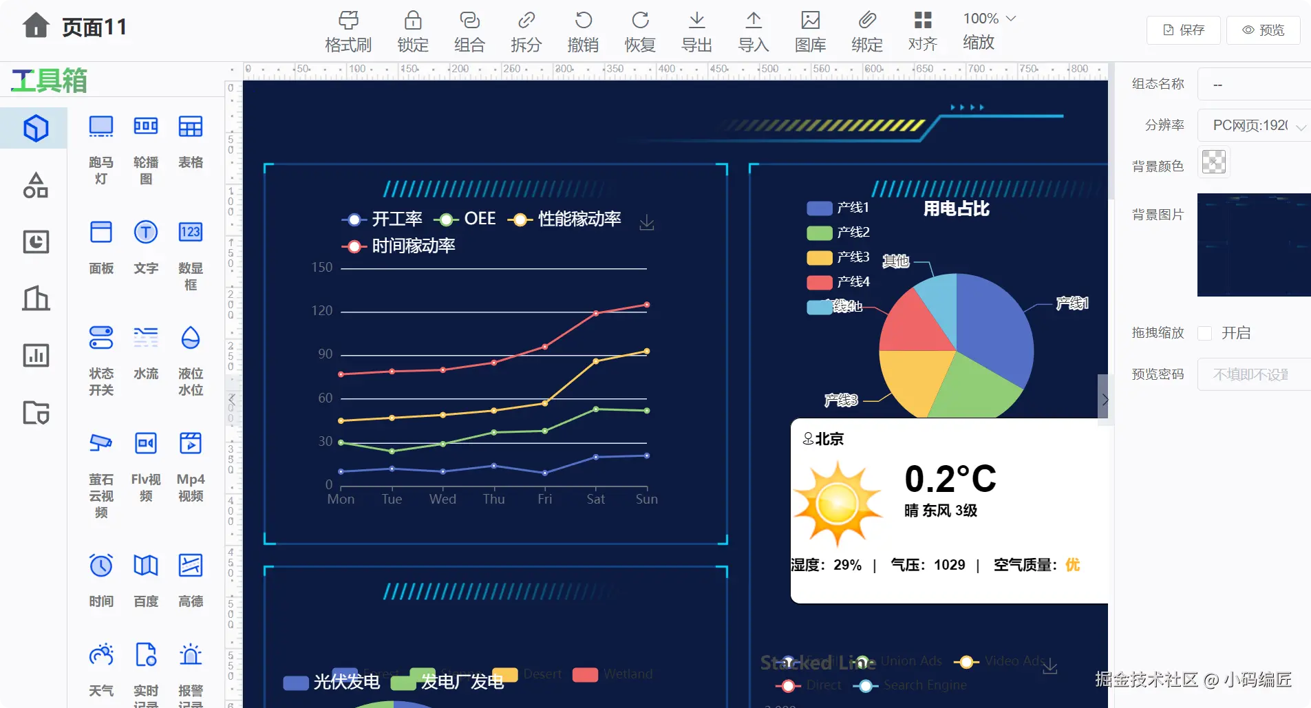 一拖一拽,自建大屏,云组态,可以广泛应用于化工、石化、制药、冶金、建材、市政、环保、电力等几十个行业。