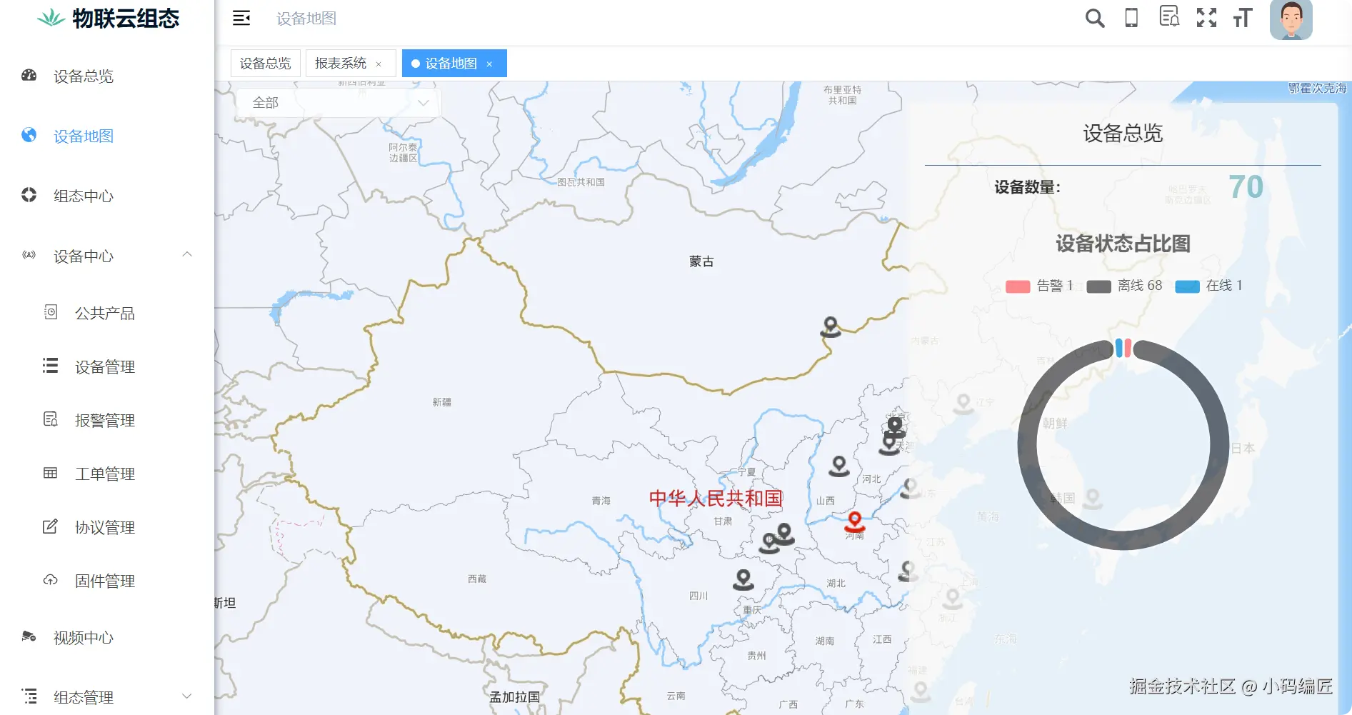 设备地图、设备管理:可视化设备位置和状态。
