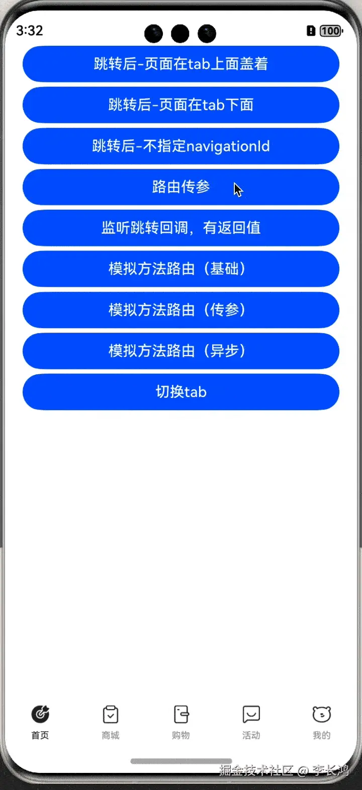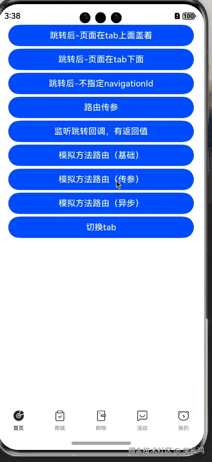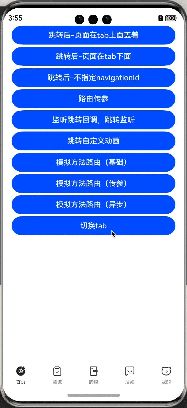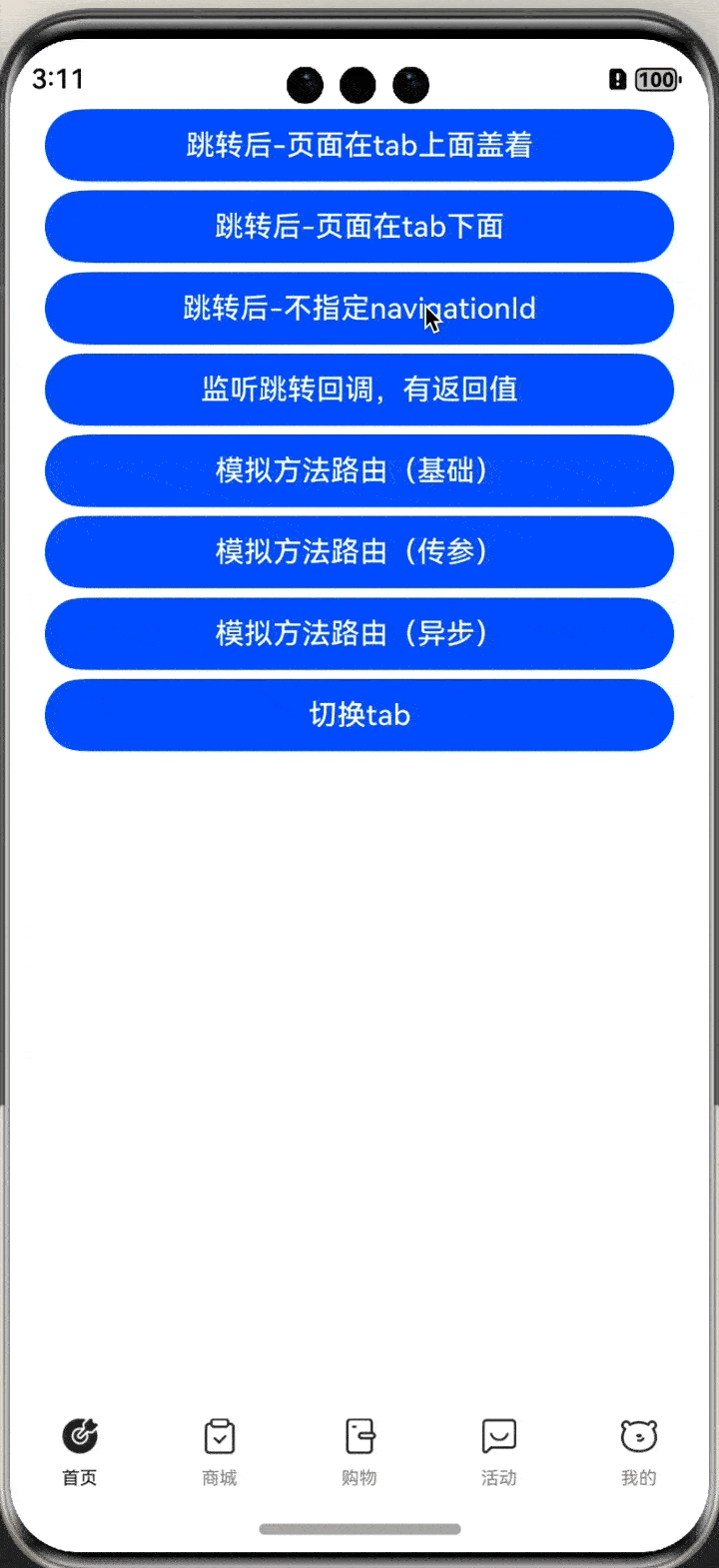 真实开发场景中,我们可以不做路由嵌套,当有需要不去覆盖tab的场景的时候,再对个别功能做嵌套即可,这里仅介绍嵌套路由的特殊能力. 上面这种实现方案会让页面跳转更加灵活,但是每次跳转必须指定navigationId