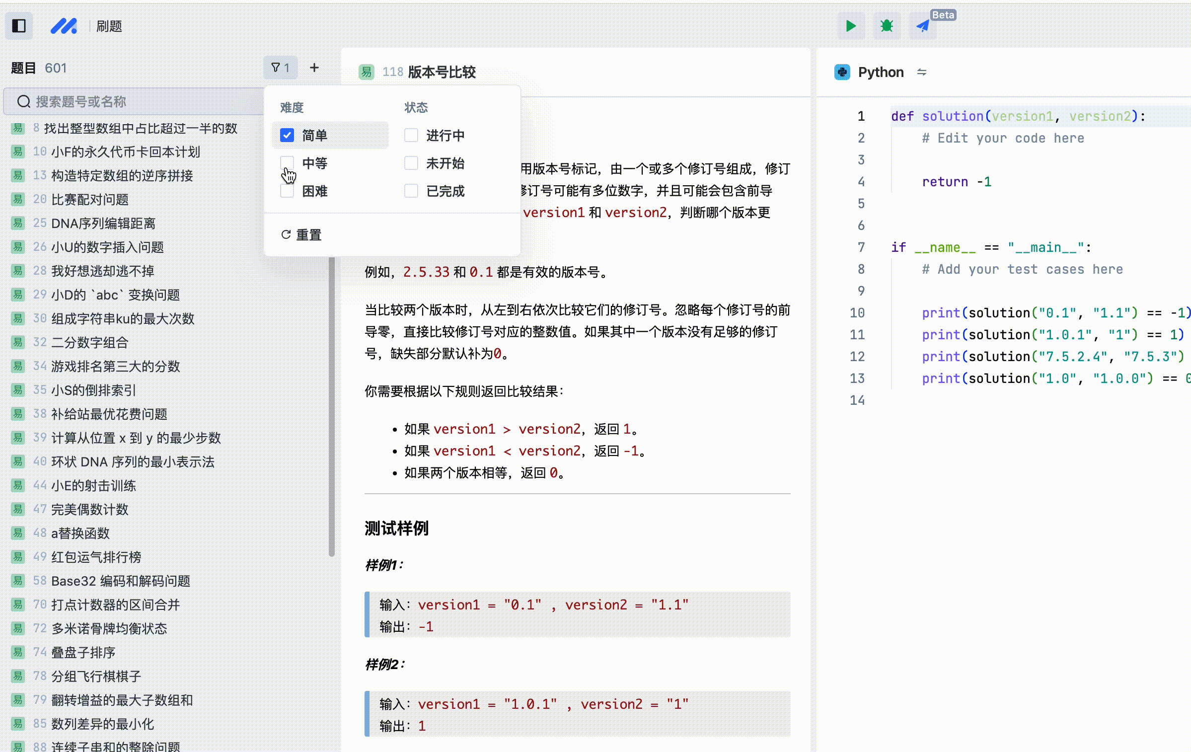 用户可以根据自身的需求,选择不同难度的题目。