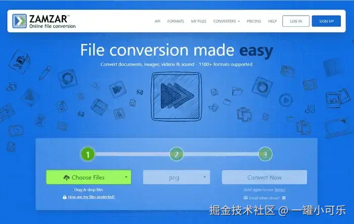 Zamzar是一个在线多媒体文件转换平台,它支持超过1100种格式的转换,包括图片、音频、视频和文档等,因此用户可以选择该网站转换png格式图片。